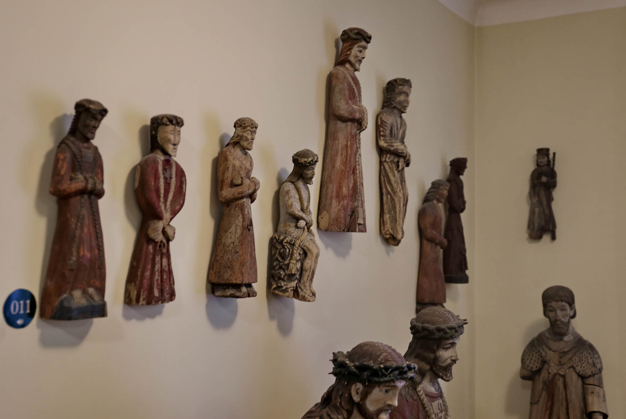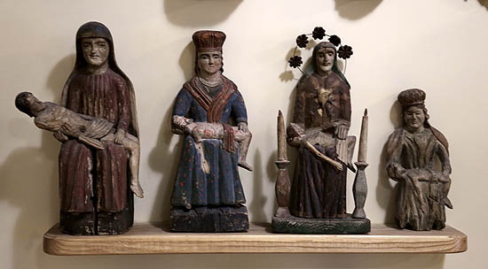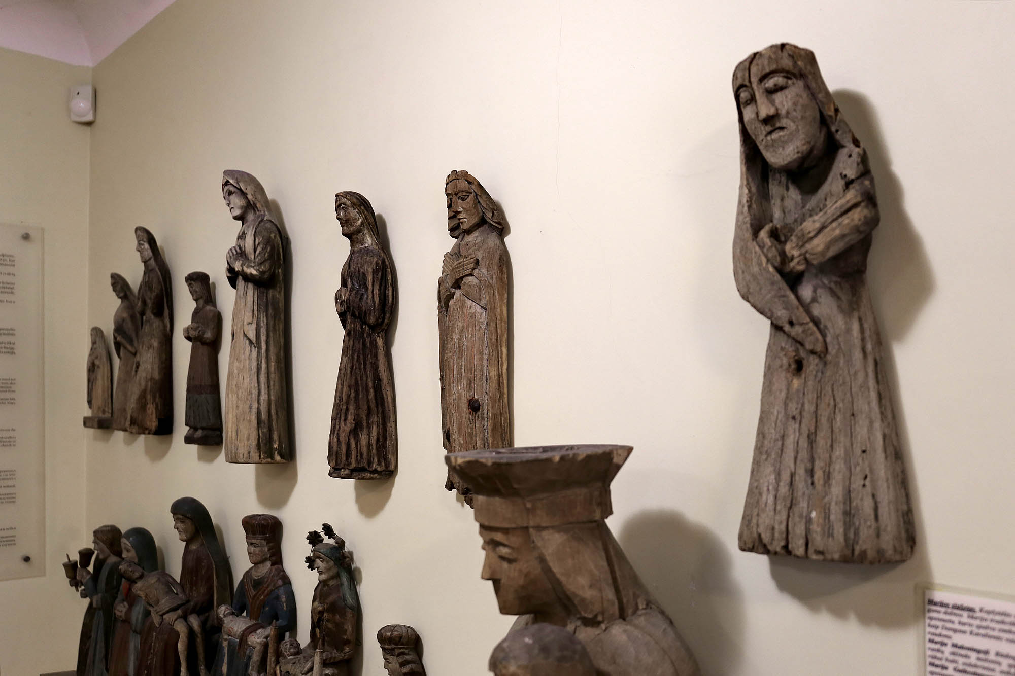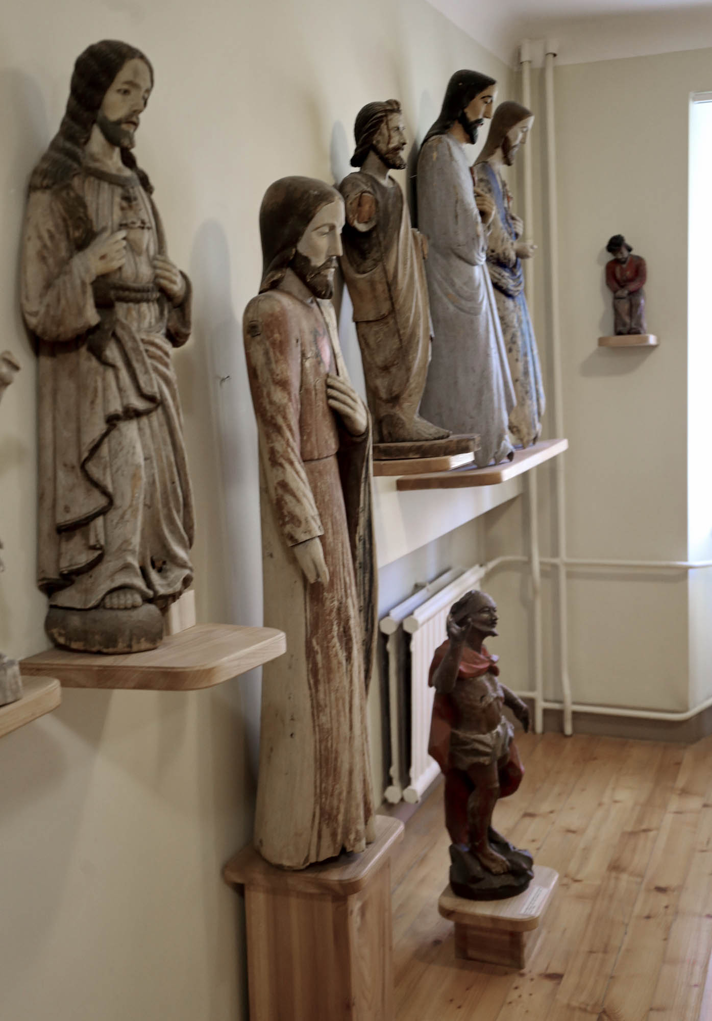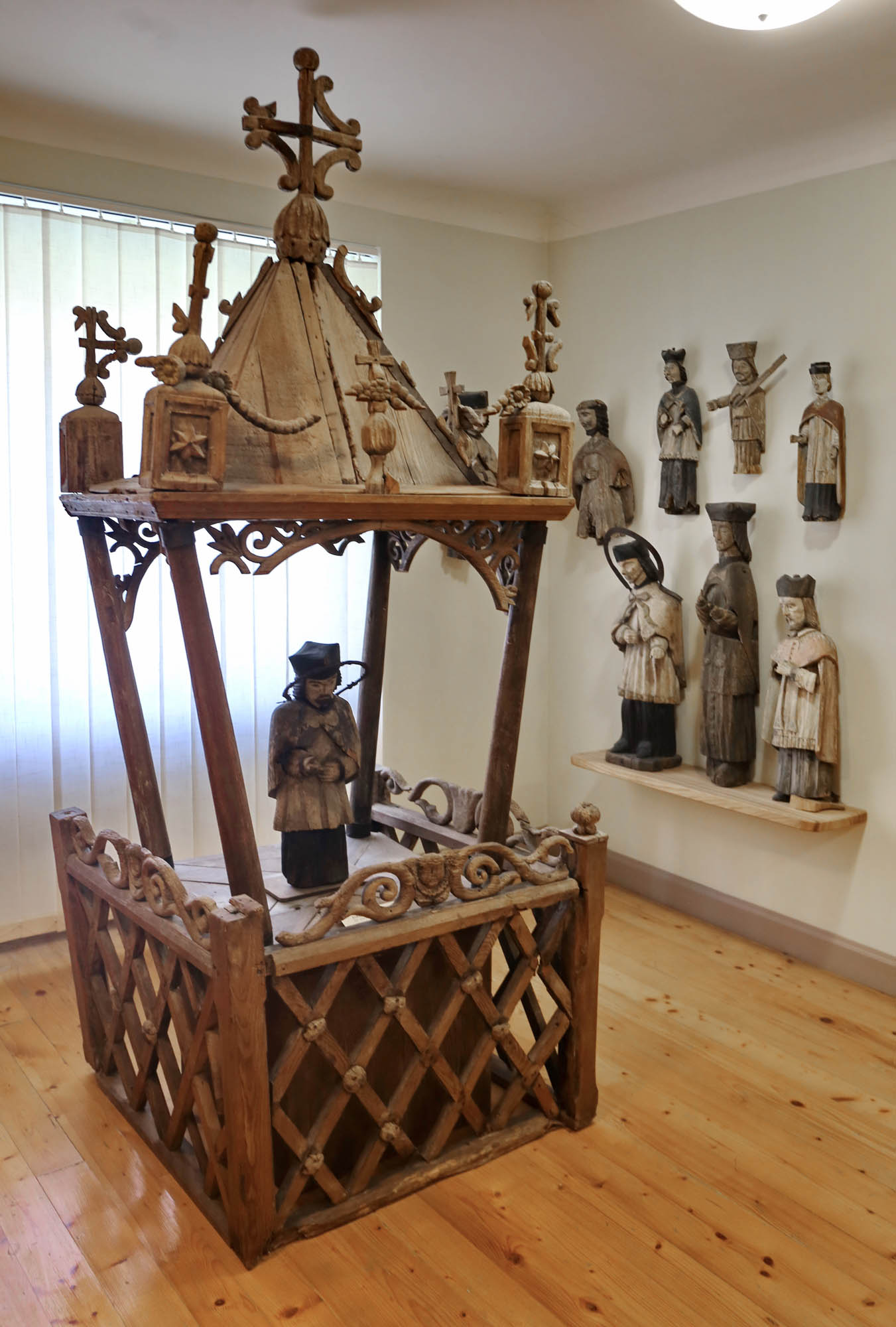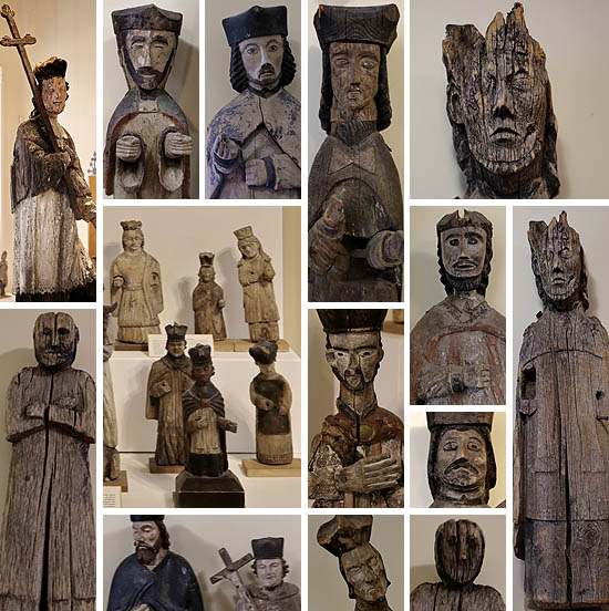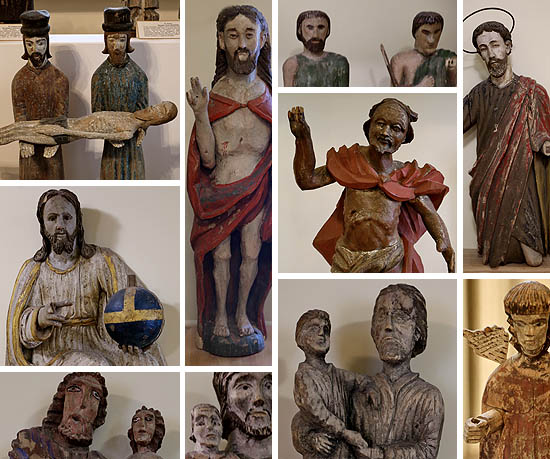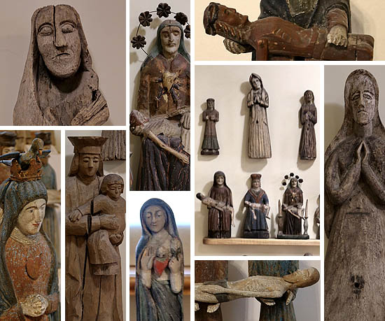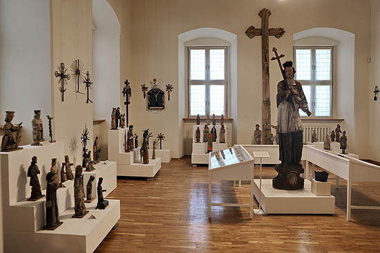 Ve sbírkách přirozeně nacházíme i sochy, které měly liturgickou funkci: Krista sneseného z kříže a zmrtvýchvstalého Krista, Tři krále a betlémské pastýře, nebo postavy jako archanděla Michaela doprovázejícího mrtvé.