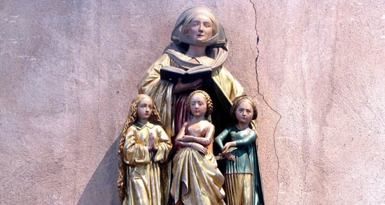 El tercer tipo, y el más extendido, surge de un devoto malentendido, representando a Hagia Sophia como “Santa Sofía” acompañada de sus tres hijas, Vera, Nadezhda y Lyubov, es decir, Fe, Esperanza y Amor, que, como las llamadas “virtudes divinas”, según la teología, realmente se originan en la Sabiduría Divina. Según la tradición ortodoxa, vivieron y sufrieron martirio en la Roma del siglo III. Su veneración se menciona por primera vez en la Roma del siglo VI. Entraron en el martirologio romano en el siglo XVI y más tarde fueron eliminadas por no ser verificables históricamente. La Iglesia Ortodoxa aún las honra, celebrando su fiesta el 30 de septiembre. Su representación rusa más antigua conocida es un icono de Novgorod del siglo XVI, ahora en la Galería Tretyakov.