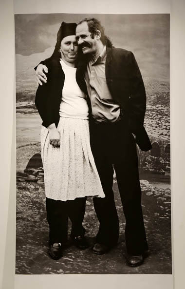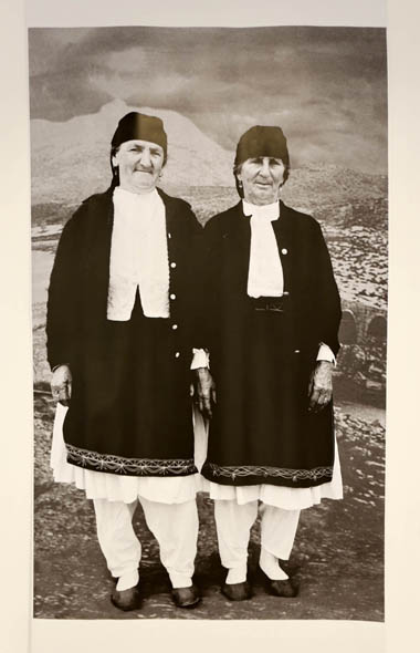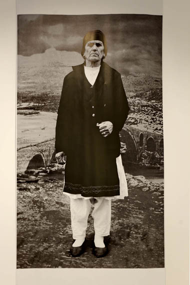 old Ottoman Mesi Bridge forming a striking backdrop. More precisely, in keeping with the Marubi tradition, they stand in the studio — with a huge photograph of the heights and the Mesi Bridge in the background.