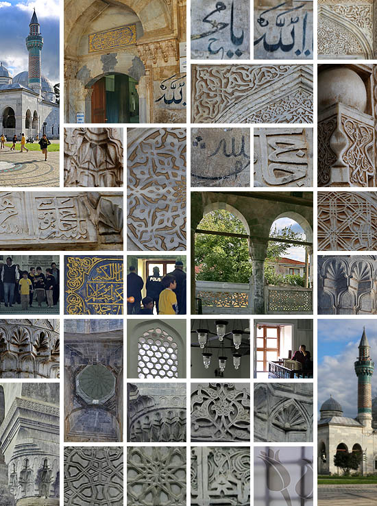 The third is İznik’s pride, the Green Mosque. Built by Çandarlı Kara Halil Hayrettin Pasha, grand vizier to Murad I, between 1378-1391, it was the second mosque in İznik after the Haci Özbek Mosque and imitates its distinctive vault. It also served as a model for the mosques in Bursa and the first ones in Constantinople. Likely, carved stones from a Byzantine church once standing here were reused. Its name comes from the green and blue glazed tiles decorating the minaret.