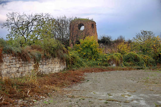 A little north of the palace stood the city’s western gate, the Porta Lacus, or Πύλη τῆς Λίμνης, today still known as the Göl Kapısı, the Lake Gate. This is the worst preserved of Nicaea’s gates, and probably always the least impressive and least fortified. On this side, the lake itself provided natural defense, and unlike the other three gates, this one served economic rather than representational purposes: fishing, transport, warehouses. Accordingly, it was the widest of the four. Today only the remains of two towers survive, flanking the modern street.