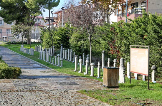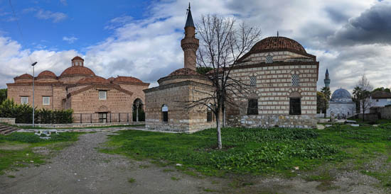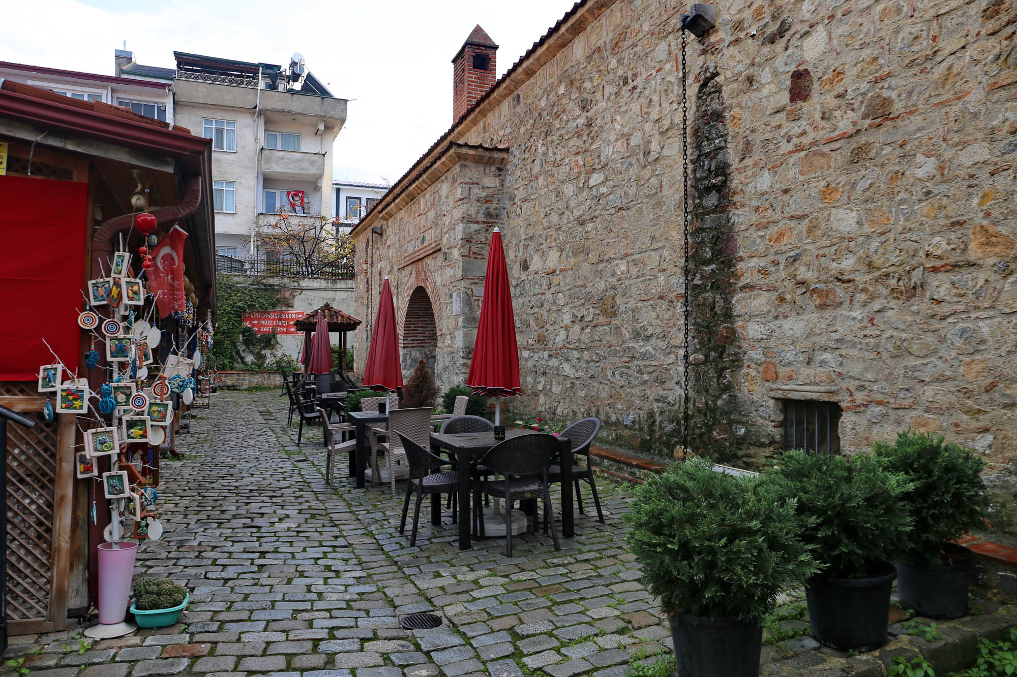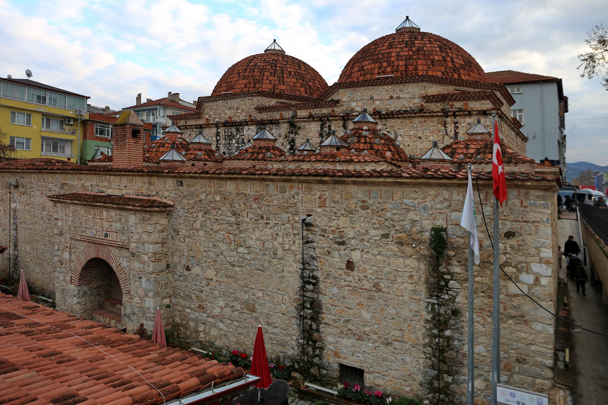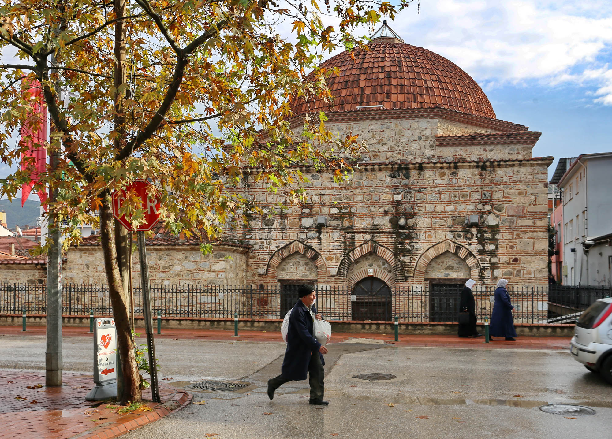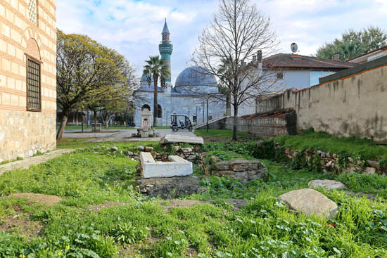 Next to the tomb, a few ancient columns and cornice fragments casually lie around—the ruins of the Great Bath, now a cat hangout. From here, a footpath leads north behind the street to the real heart of the Muslim quarter, where three important early Muslim buildings stand. The first is the 15th-century mosque named after the Quranic scholar Seyh Kutbuddinzade Mehmet, the second is the Nilüfer Hatun soup kitchen and guesthouse, built in 1388 by Sultan Murad I in memory of his mother, now the city Archaeology Museum.