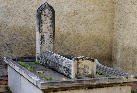 The oldest and most impressive tomb is in the Hayrettin türbe, which consists of two domed chambers. It belongs to Çandarlı Kara Halil Hayrettin Pasha, the founder of the Green Mosque. As Grand Vizier under Sultan Murad I (1364), he was the first in his clan to hold office until his death in 1387, followed by his two sons, Ali and Ibrahim, and then their sons, up until Halil Pasha, who was executed in 1453. Next to his beautifully carved tomb is his son Ali’s, and around them are other family members, all adorned with exquisite 15th-century thuluth and naskh calligraphy.