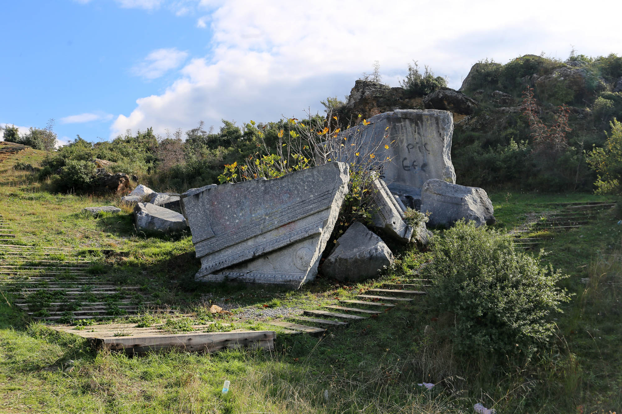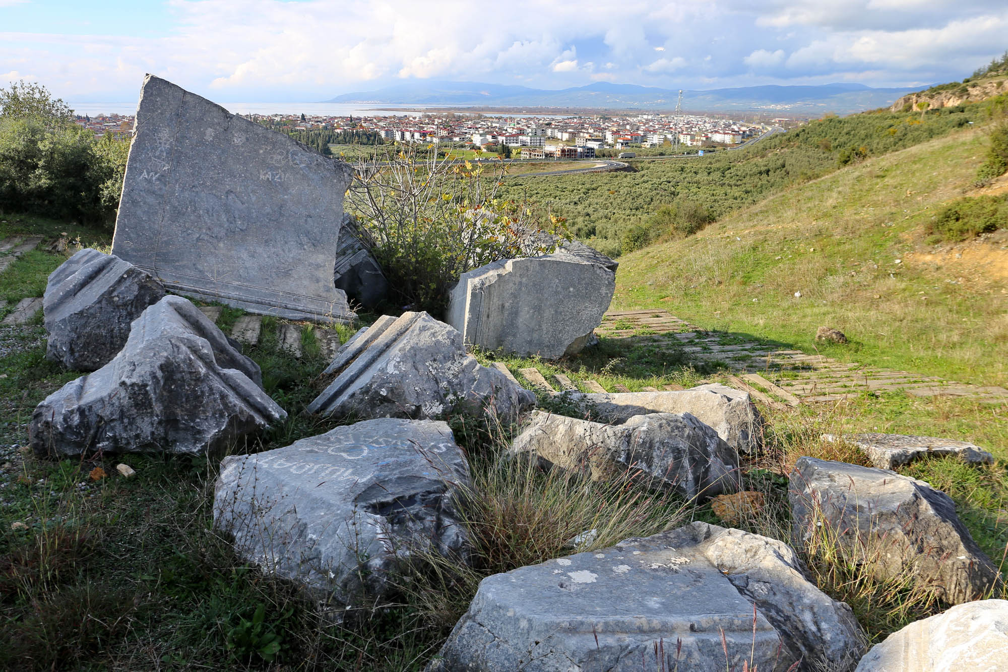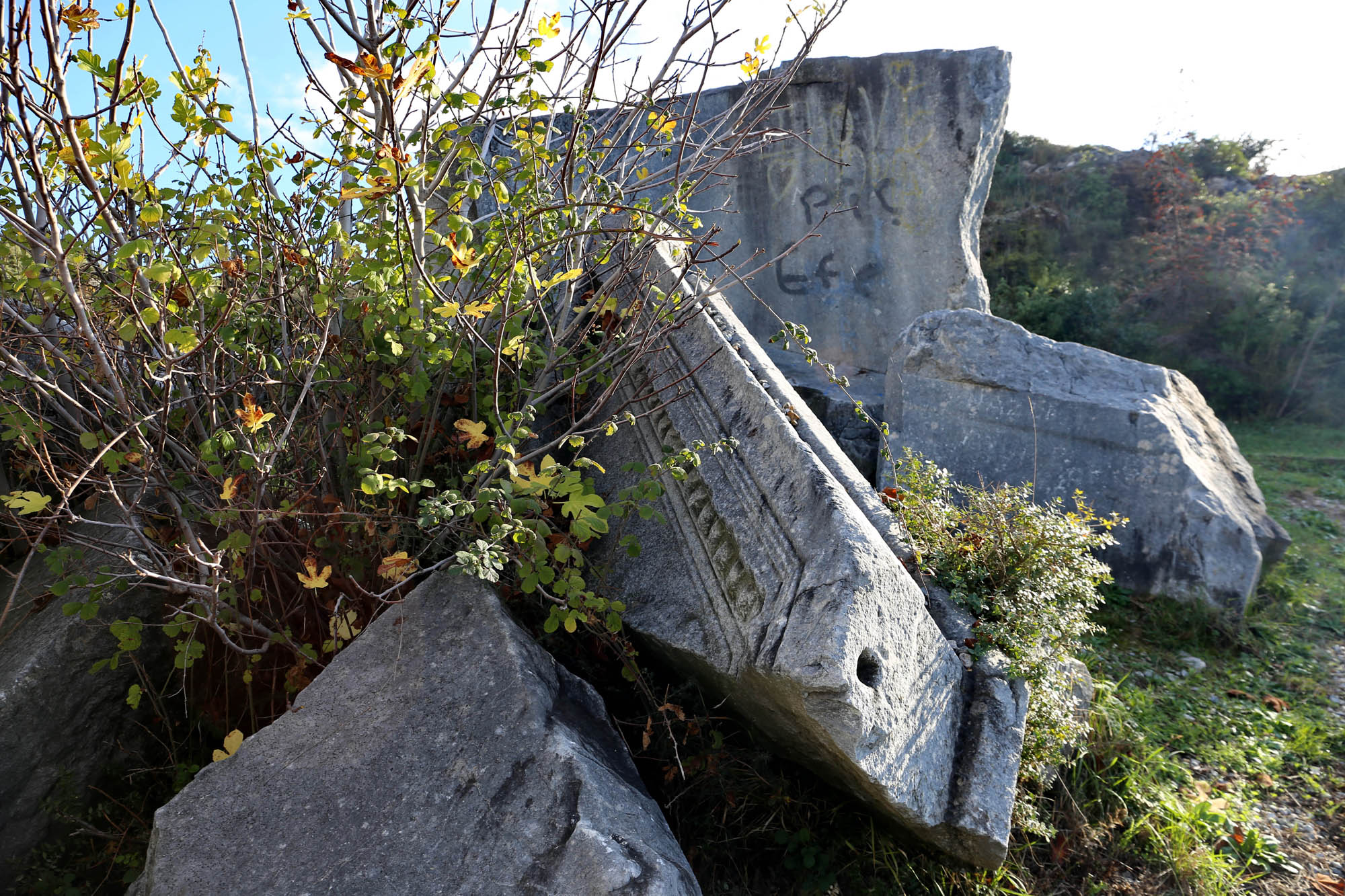 The road next to the cemetery continues winding through olive groves up the hillside, where another tomb stands – the oldest of all. Locals, God knows why, call it the Berber Kaya Lahdi, “Barber Sarcophagus.” Research shows it belonged to King Prusias II of Bithynia (182–149 BCE). Prusias was killed by his own son Nicomedes, and his tomb fared no better: shattered and covered with graffiti, it stands above Nicea.