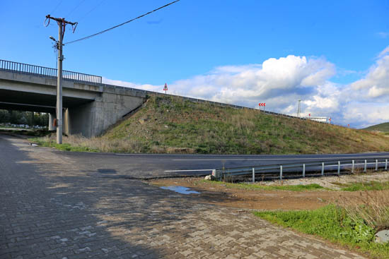 After the cemetery, we encounter an example of the tragically comic Turkish traffic planning, familiar yet always astonishing. The city’s ring expressway passes above the cemetery, and from it a sleek, newly paved exit arcs down, which… ends abruptly at the old, poor road next to the cemetery, like a river dying in the desert.