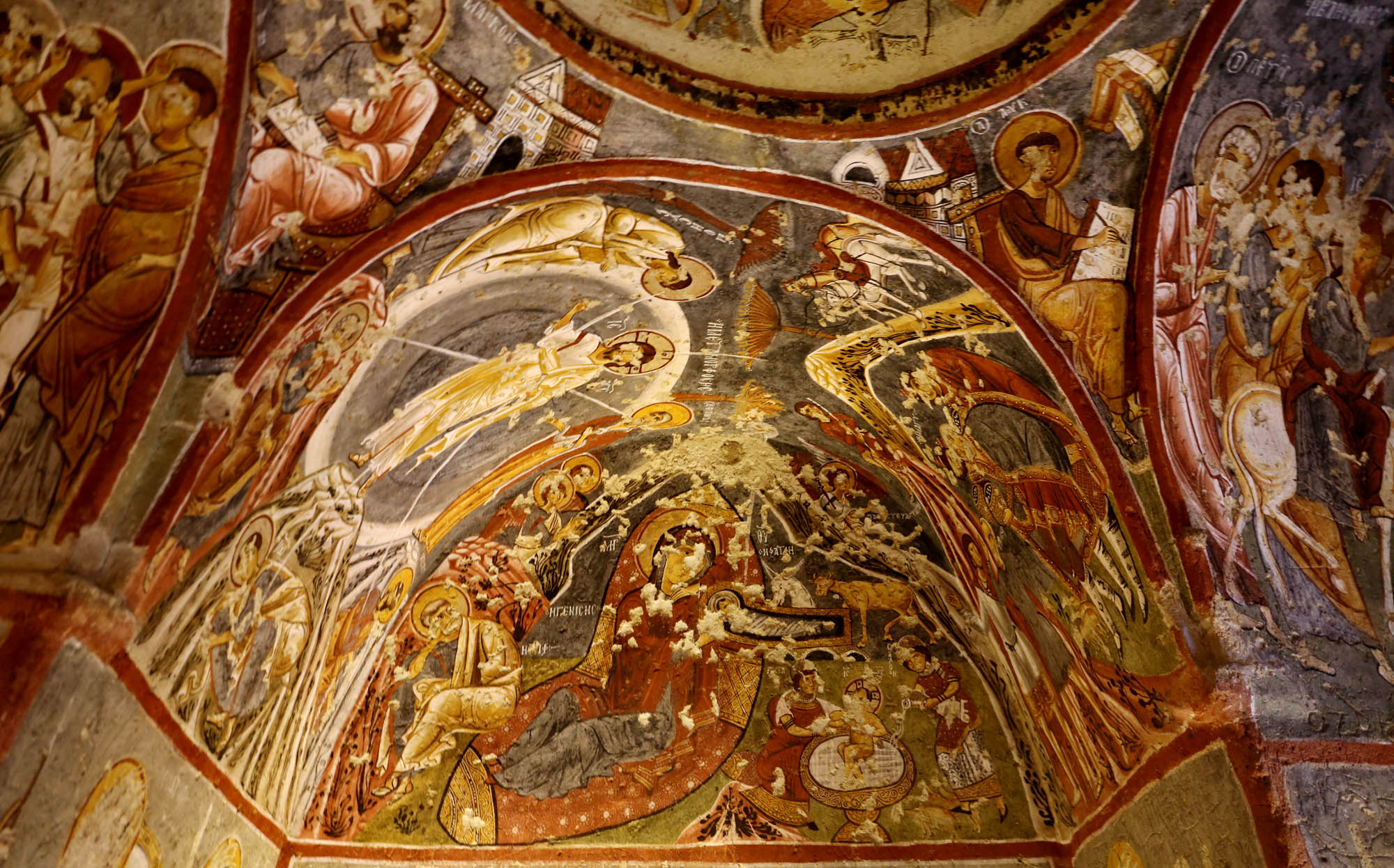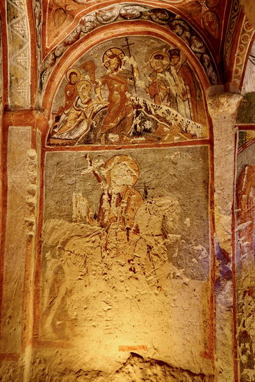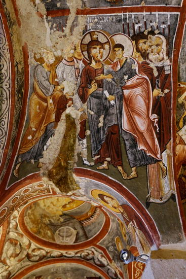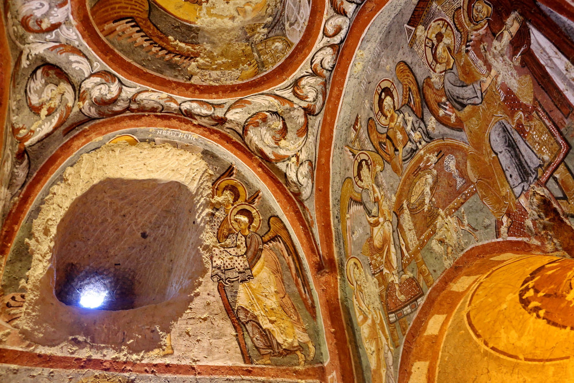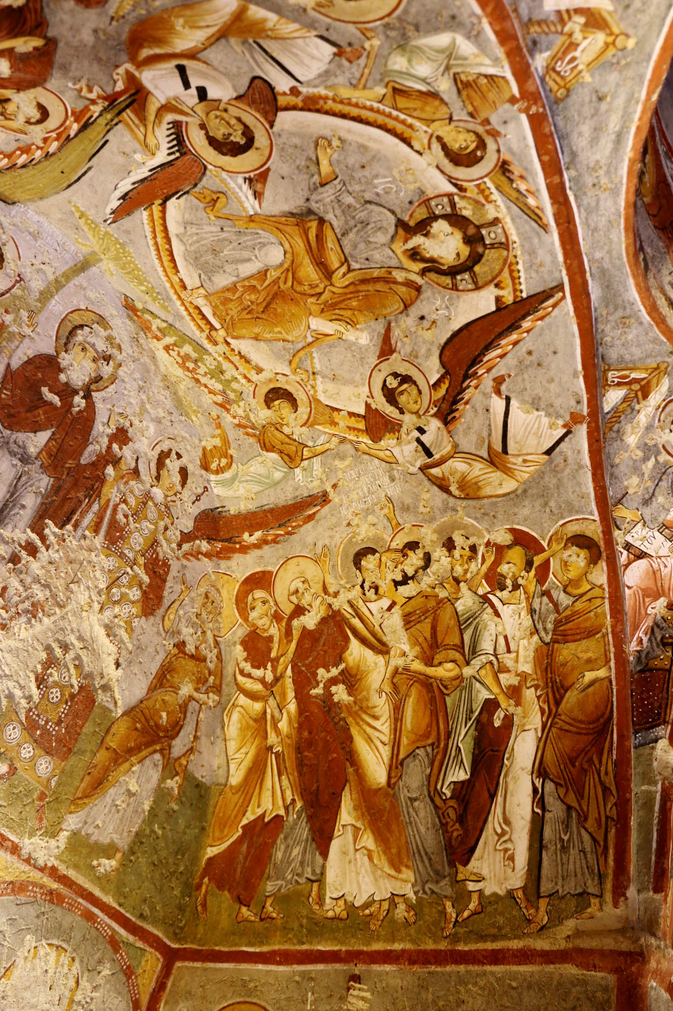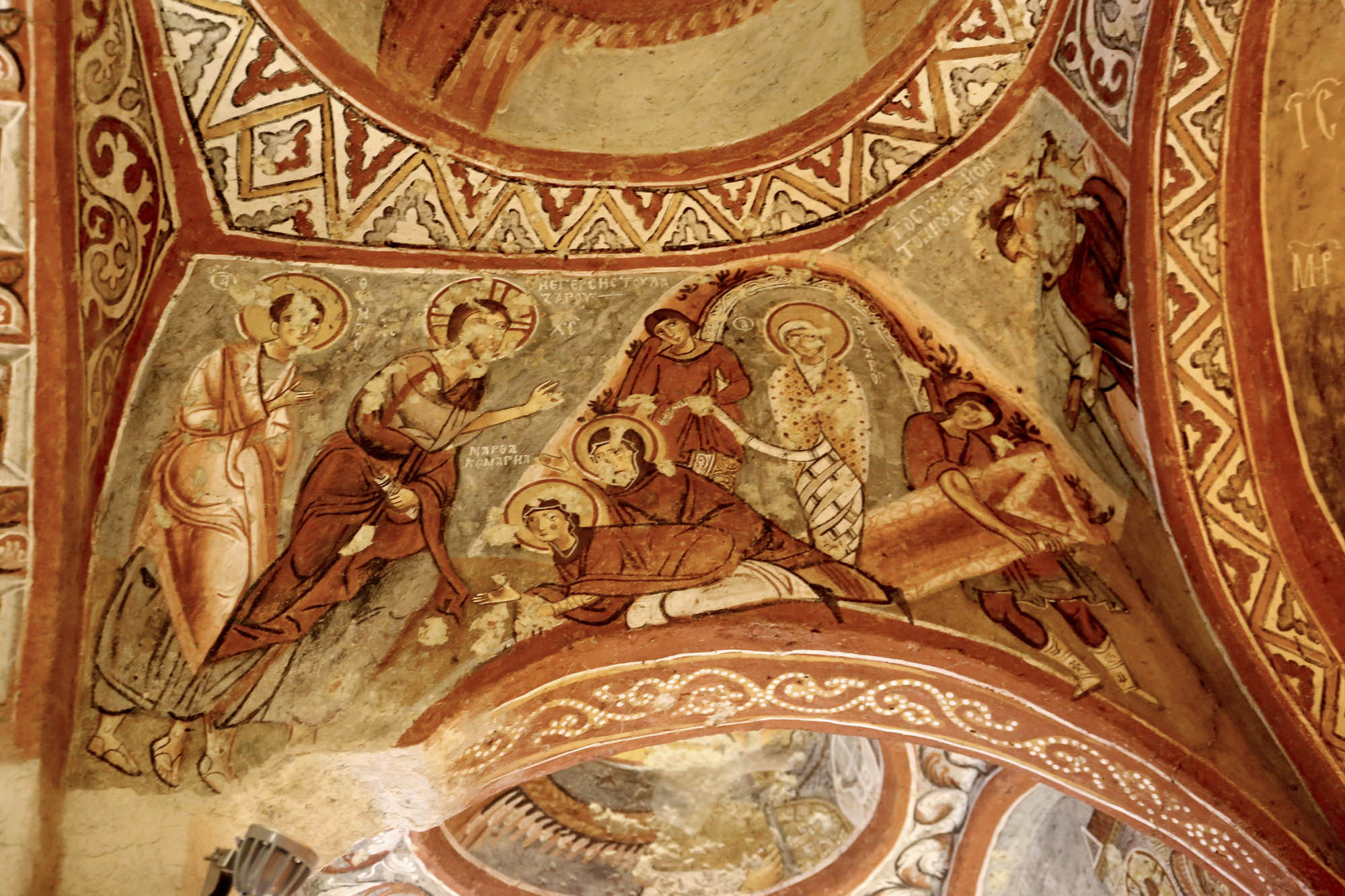 Like the other “four-column” churches — Elmalı, Karanlık and the church of Çavuşin — its entire interior surface is covered with frescoes, most likely painted by the same Constantinopolitan workshop that decorated the other three, again in the mid-11th century.