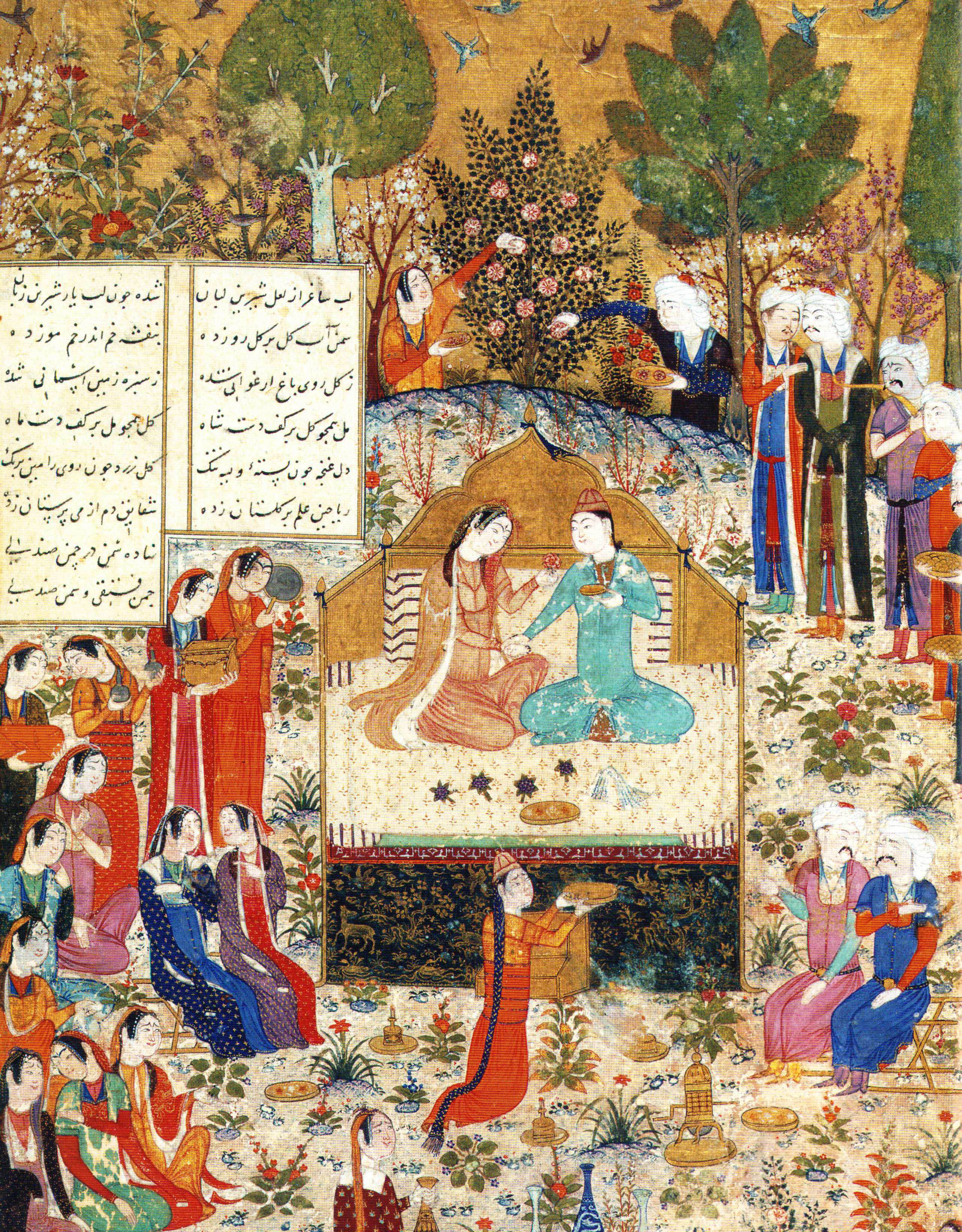Camsap slowly made his way toward the center of the garden when, on the right side of the courtyard, on a slightly raised platform, he noticed a throne of astonishing size and beauty. It was adorned with countless colorful gemstones, mother-of-pearl inlays, and intricate carvings. It radiated boundless power and unshakable dominion. As he reached the steps of the throne, a host of ifrits, snakes, and dragons—perfectly in tune with the garden’s dreamlike mood—suddenly entered the scene.