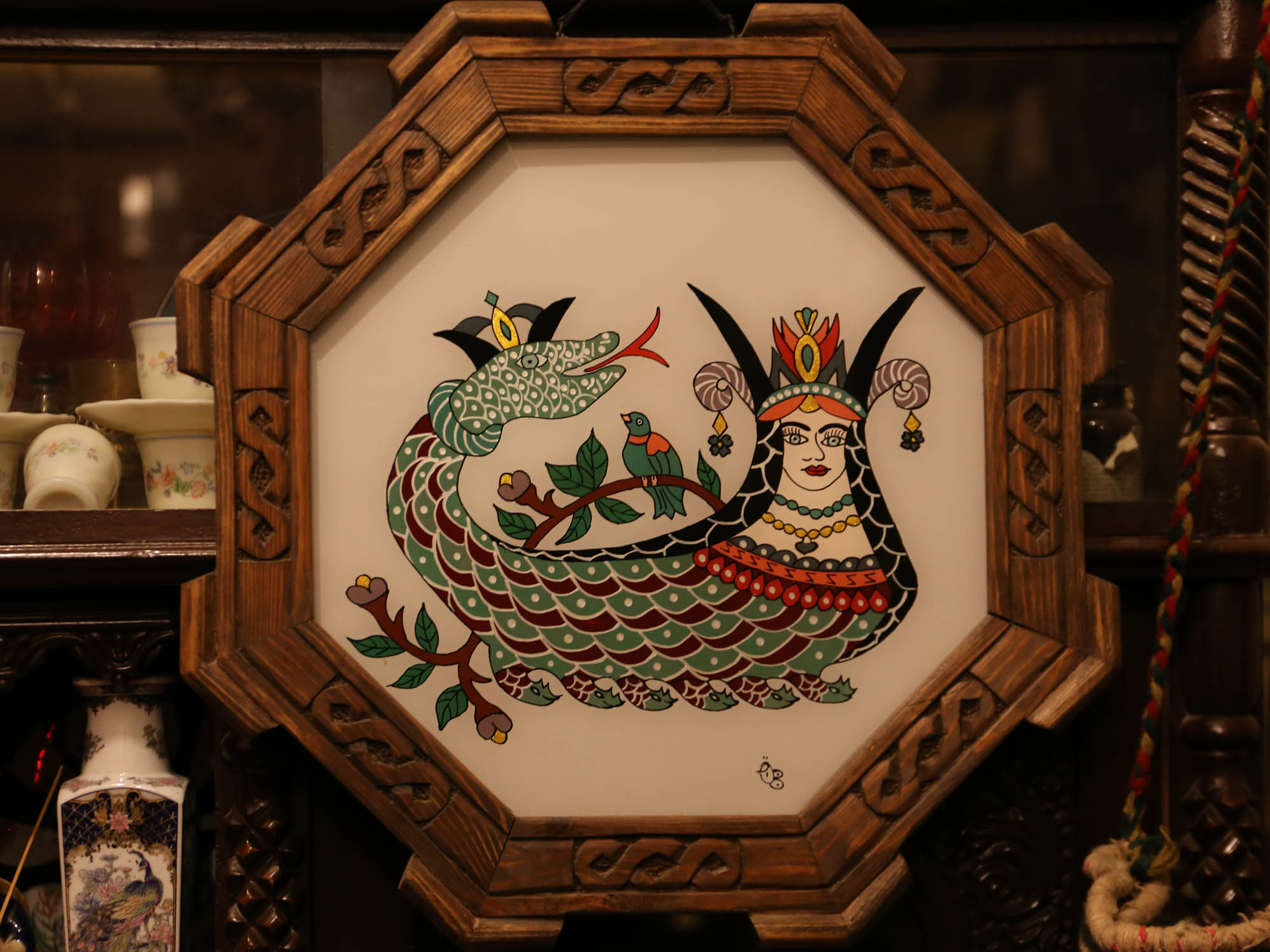 Meanwhile, my gaze fell on the Şahmeran images hanging on the wall and lined up one after another on the floor. I counted them individually, when my master asked: