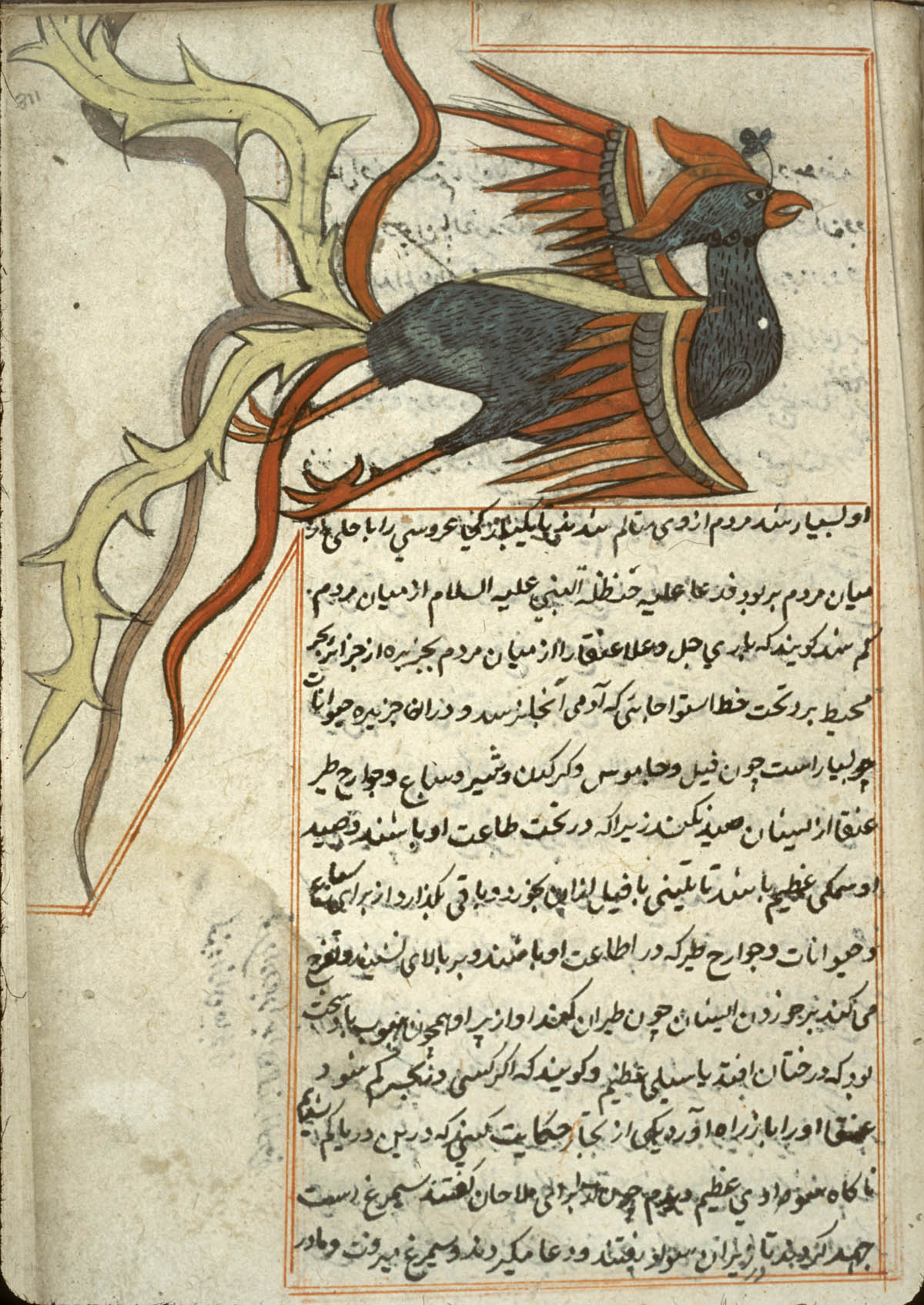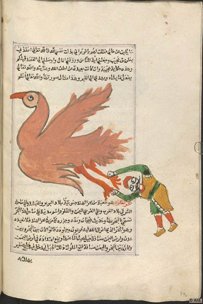 Months later she arrived, and I begged her for a long time. She was accustomed to love and lovers; she knew the value of affection. She had heard so many stories from those she carried on her back, had grown old within so many tales. She understood me too, and let me climb onto her back—but she agreed to take me only as far as Mount Kaf. She dared not go further; she was afraid of the fairies. It seemed absurd to me that even a mighty Zümrüd-ü Anka could be afraid.