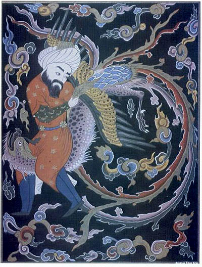 On the way we became friends. We crossed Mount Kaf, and she agreed to carry me over yet another mountain range. From the back of Zümrüd-ü Anka, the world looked completely different. We passed countless mountains, hills, plains, and lands.
