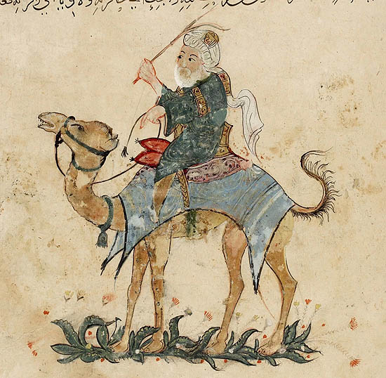 The next morning we set off on camelback and arrived at the foot of a high mountain. There the merchant slaughtered the camel on the spot and gutted it. He placed a pouch of gold in my hand and said: