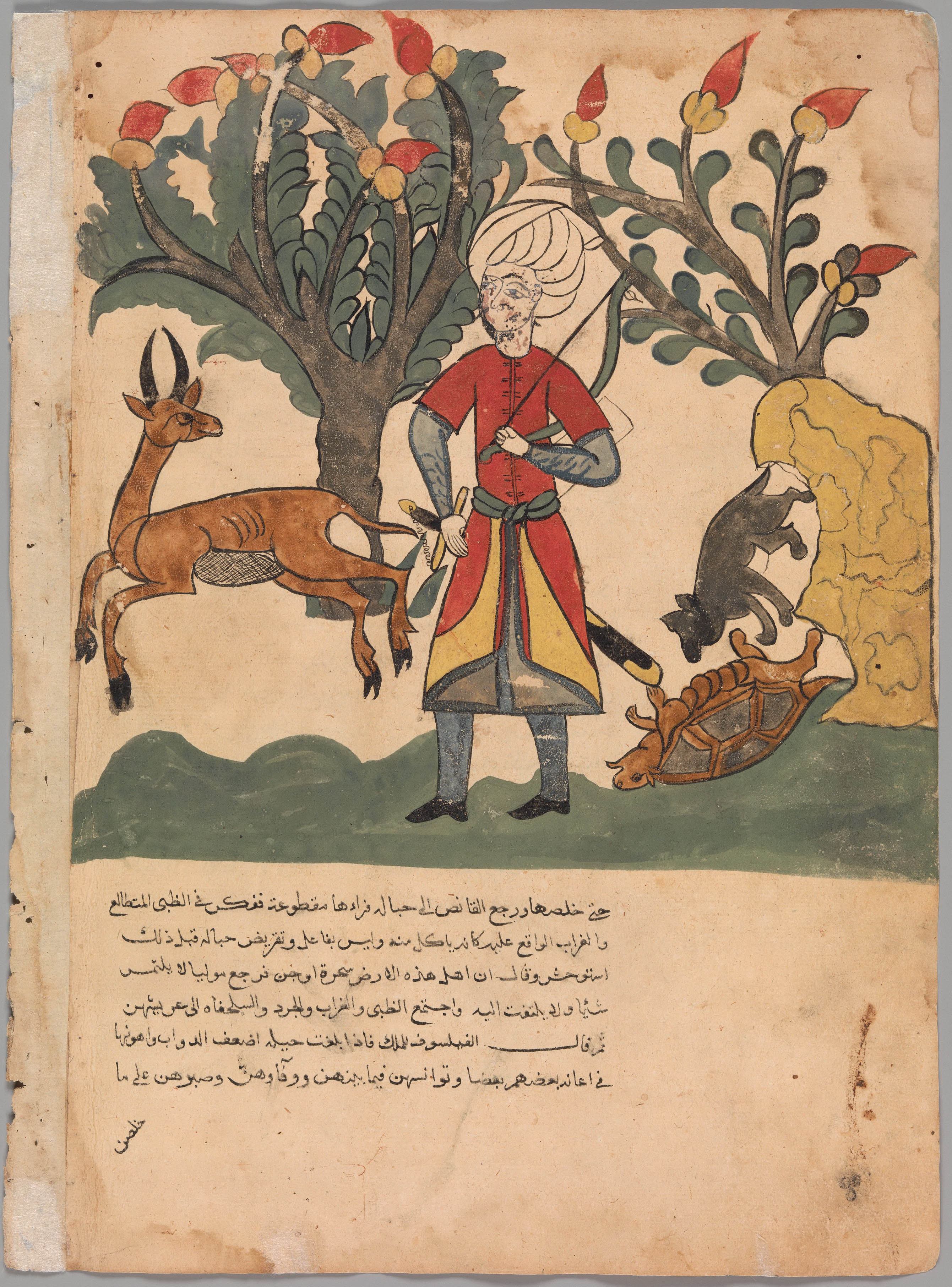 We reached the foot of the mountain. I slipped into the deer’s skin, the eagles lifted the carcass, and I was carried up to the summit—only to be deceived again. From there I came back down to the plain, found the marble palace and Shah Murgh. He said: