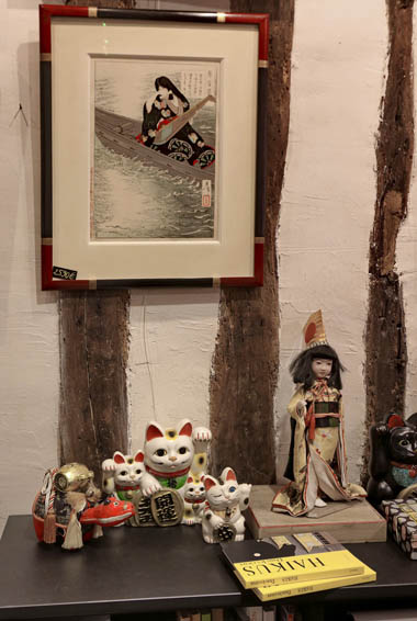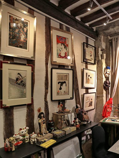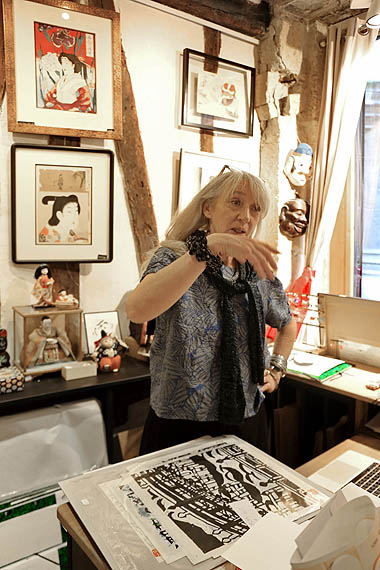 «Sí, también entran turistas japoneses, y se sorprenden mucho, incluso se conmueven. Los japoneses no saben lo populares que son los grabados japoneses en Occidente, especialmente en Francia, y se quedan asombrados de que haya aquí una tienda especializada. Pero no compran. En Japón los grabados clásicos ya no tienen un público tan amplio. Con todo, aún hacen versiones modernas» —nos enseña algunas— «pero incluso esto es raro porque es un género demasiado laborioso, ya casi nadie se atreve a con él.»