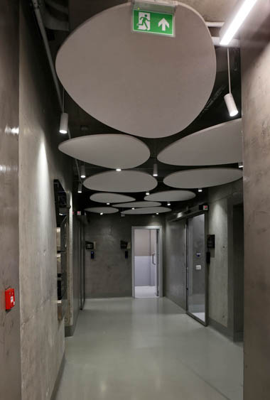 En la cubierta, un «marinero» nos observa: un médico vestido de negro que sonríe y, al vernos tomando fotos, nos pregunta si queremos subir a la terraza del techo. Por supuesto que queremos. Baja a recogernos, nos acompaña por la recepción, a lo largo de pasillos de hormigón cubiertos por formas irregulares circulares, hasta llegar a la planta superior.