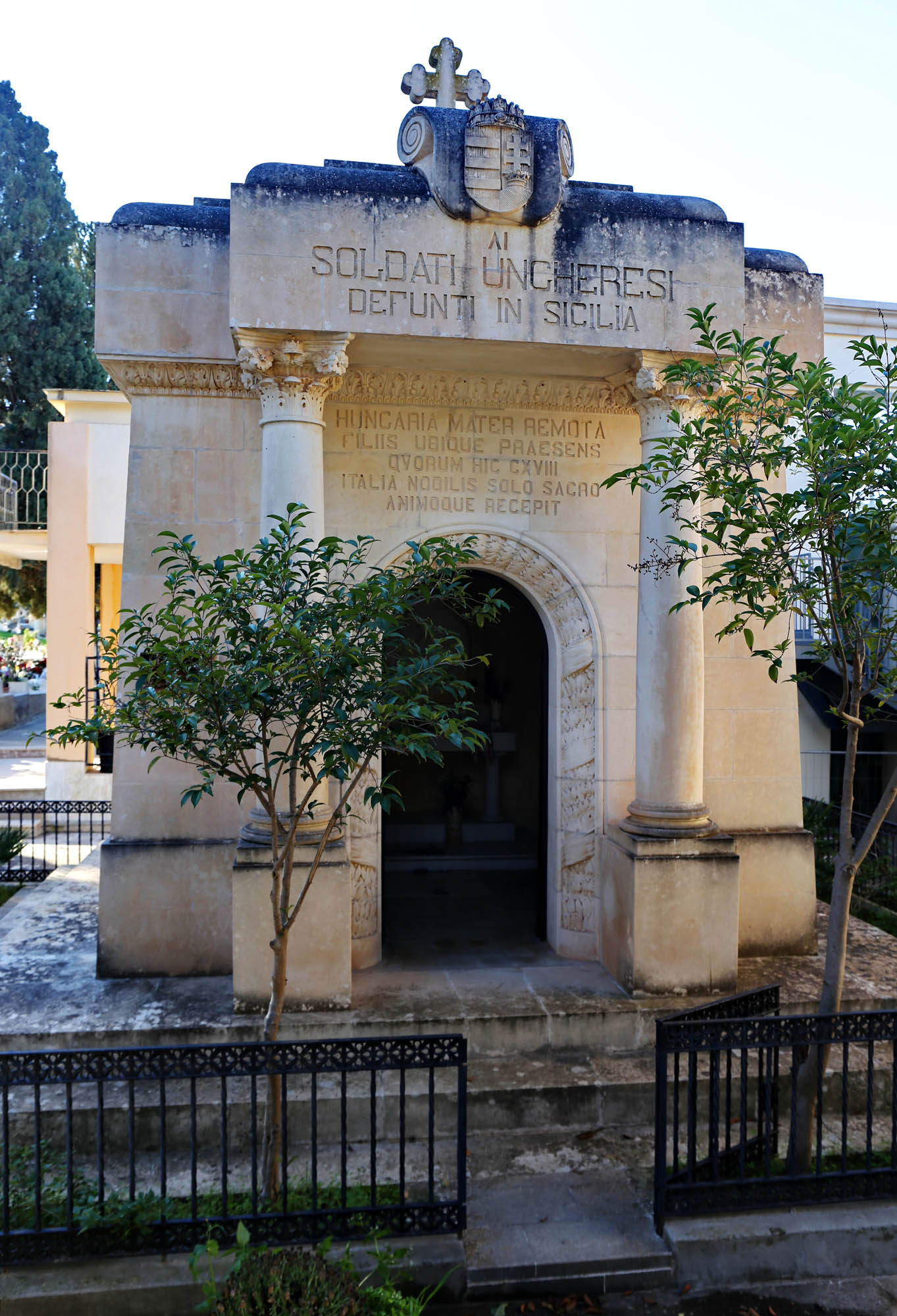 El cementerio de prisioneros, como se ve en una fotografía de la época, consistía originalmente en simples cruces de madera. Sin embargo, después de la guerra, los oficiales húngaros —que recibían sueldo incluso en cautiverio, lo que les permitía regresar a casa antes que los soldados rasos— reunieron su dinero para que el escultor István Lipót Gách, también prisionero con ellos, pudiera crear un memorial más duradero para los fallecidos.
