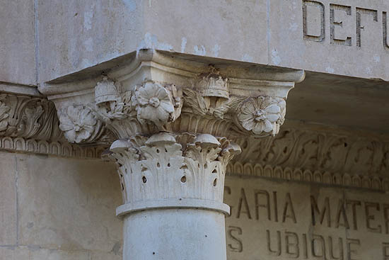 Entre los edificios, la pequeña cripta de planta cuadrada de mármol blanco no destaca. Su fachada, sostenida por dos columnas, está decorada con un gran escudo de Hungría e inscripciones en italiano y latín: