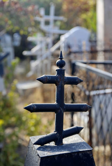 Károly Payer me envió las coordenadas aproximadas del memorial, pero aún así no es fácil de encontrar. Las cruces de madera habían desaparecido hacía tiempo, reemplazadas por humildes tumbas rusas, lápidas de hormigón, cruces ortodoxas de hierro soldado y llamativos ramos de flores artificiales atados con alambre.