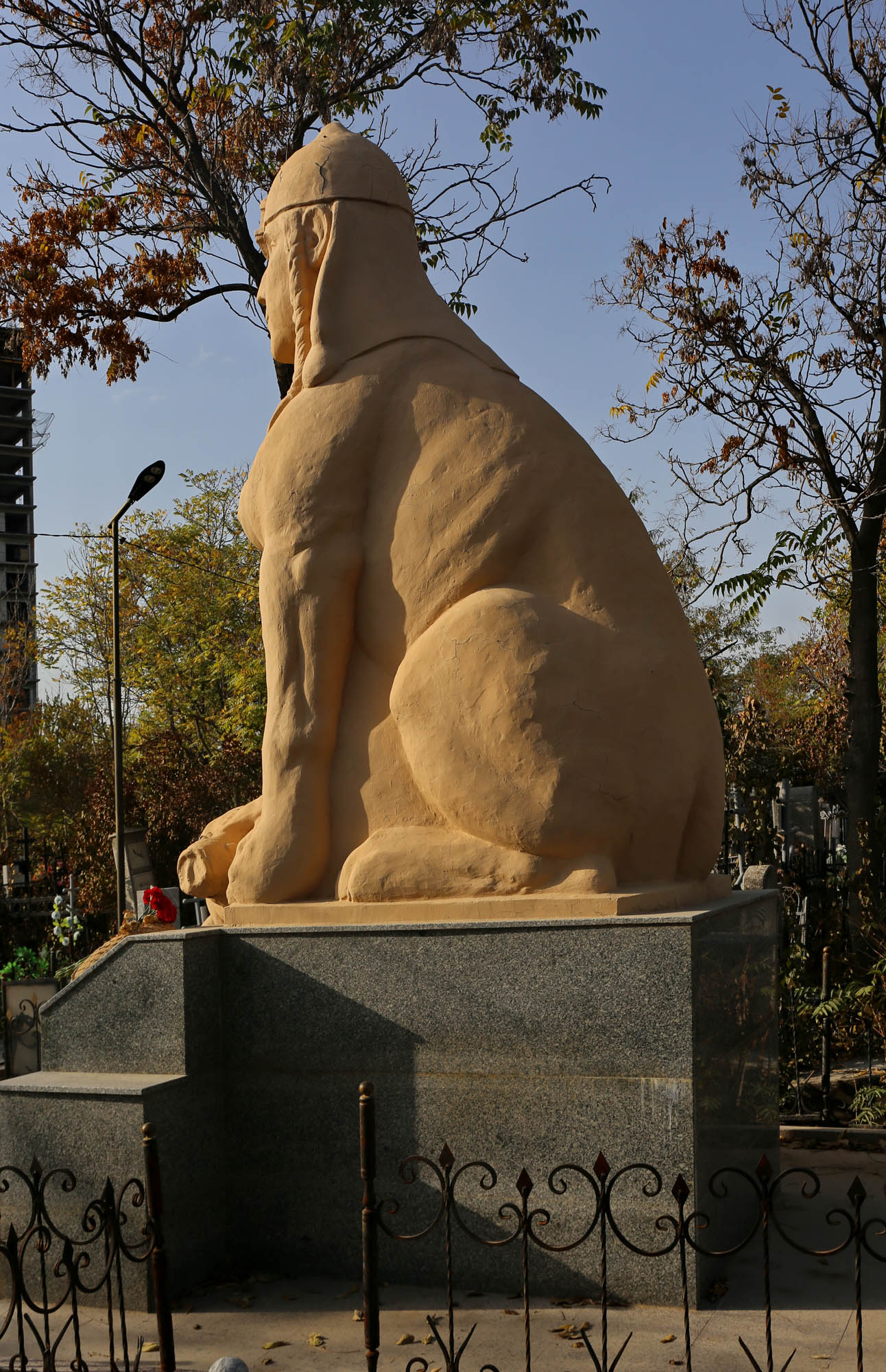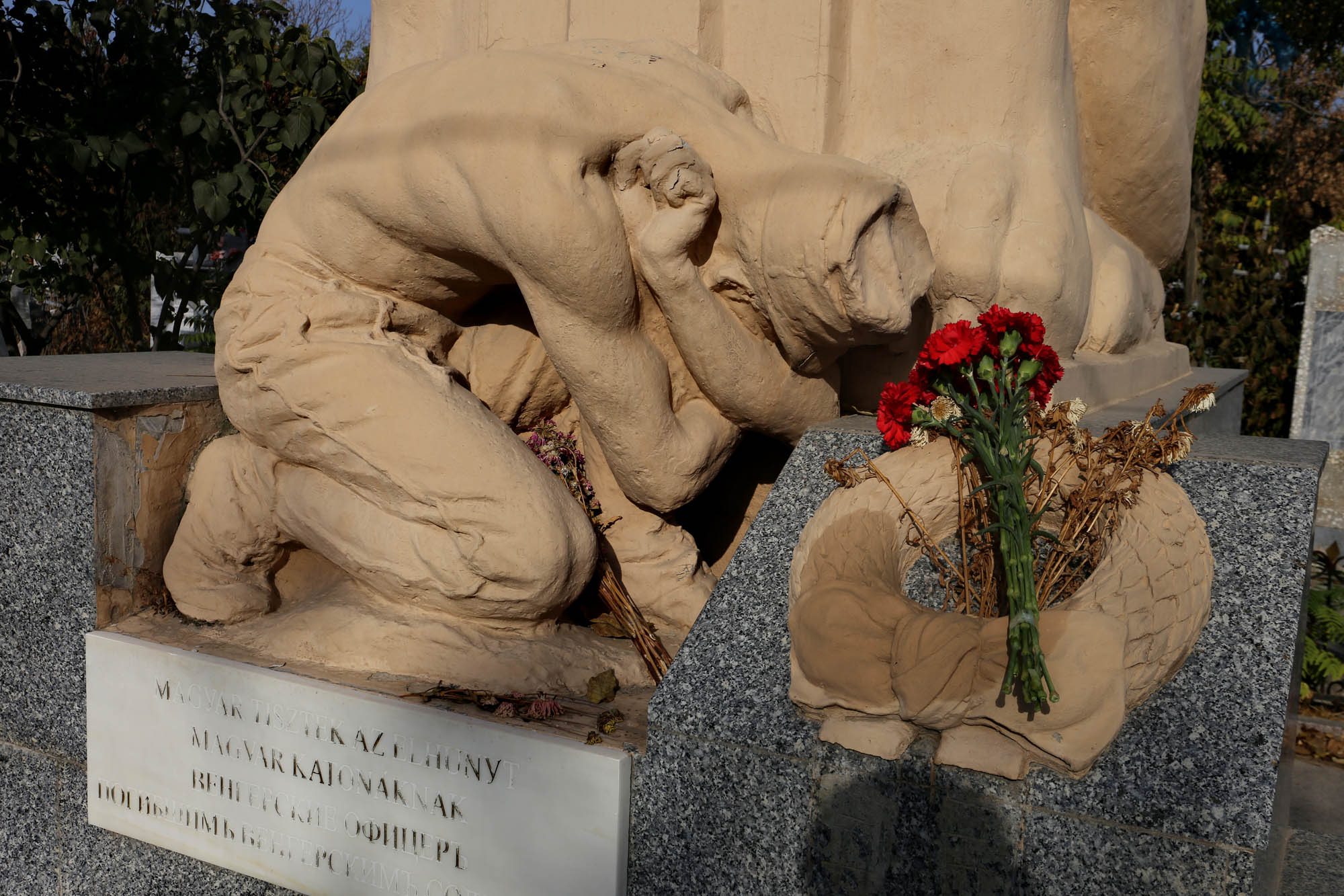 El memorial es una enorme esfinge coronada, con grandes pechos, trasero poderoso, trenzas húngaras antiguas y gorra, mirando a lo lejos con ojos ciegos. El simbolismo no está del todo claro: ¿alude al misterio de la vida y la muerte, o quizás a los orígenes orientales de los húngaros enterrados aquí?