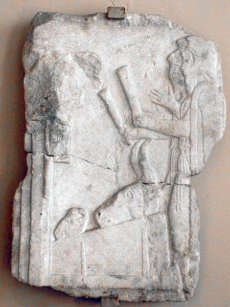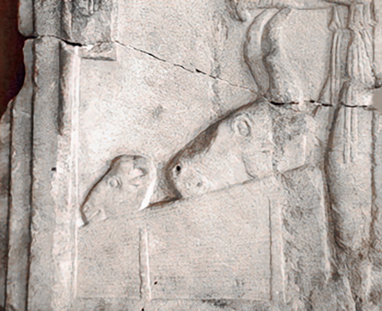 La ofrenda de las cabezas de un carnero y un buey sobre el ara del sacrificio. Dascilio, s. V. a. C. Museo Arqueológico de Estambul