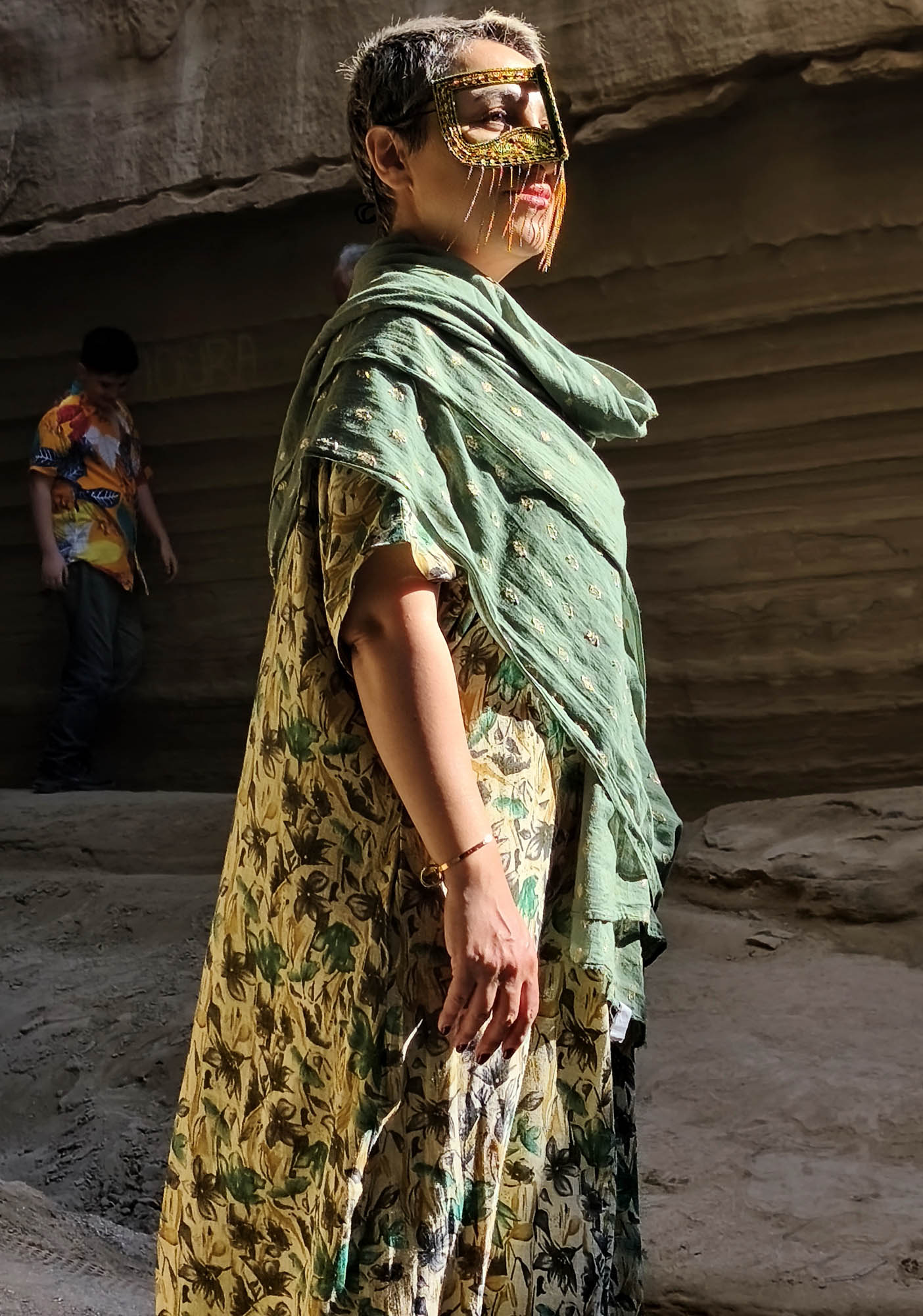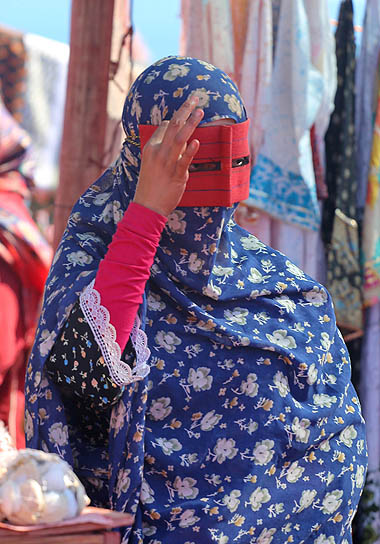 به همین دلیل بسیار جالب است که در حالی که دختران ایرانی در خانه با الزام حجاب میجنگند و معمولاً در جزایر آن را نمیپوشند، اینجا با خوشحالی نسخه سبک boregheh مناسب برای گردشگران را میپوشند — نسخهای که تقریباً تمام صورت را نشان میدهد و در عین حال با کمی رمز و راز آن را میپوشاند. گویی آنها نه یک نماد پدرسالاری ایرانی، بلکه نسخهای فولکلوریزه از ماسک کارناوال ونیزی را پوشیدهاند، که شاید توضیح دهد چرا این برایشان پذیرفتنی است.