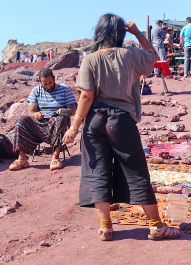 A turisták – a mi kivételünkkel mind perzsák – leülnek mellé fotózkodni, aztán mennek tovább. Meglepve nézi, hogy mi odaülünk elé és hosszan hallgatjuk.
