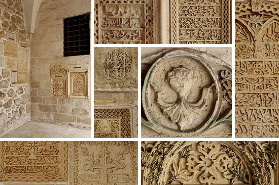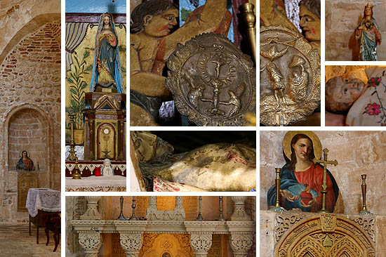 A templom kapuján kilépve az árkádok alatt a falakon a korábbi püspökök szír és arab nyelvű epitáfiumai láthatóak, kicsi modern latin betűs réztáblákkal ellátva.