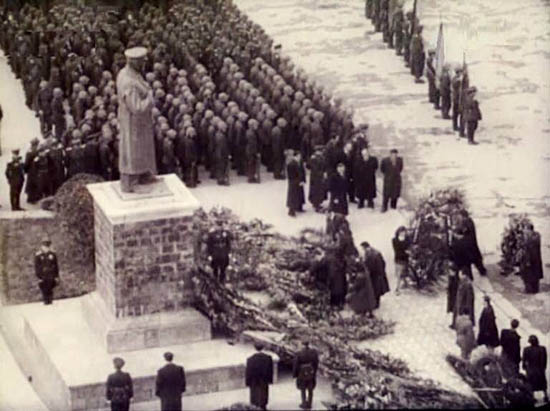 Un’altra grande statua di Stalin, immortalata sul lato destro di una fotografia, non era nel cuore cittadino ma comunque in posizione di rilievo: davanti al municipio del quartiere Kombinat, polo industriale e sede delle grandi fabbriche tessili.