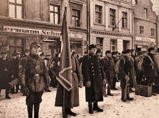 Schieramento delle unità appena formate del Volkssturm nel centro del distretto di Guhrau, seguito dalla loro marcia verso est per respingere l’Armata Rossa in avanzata.