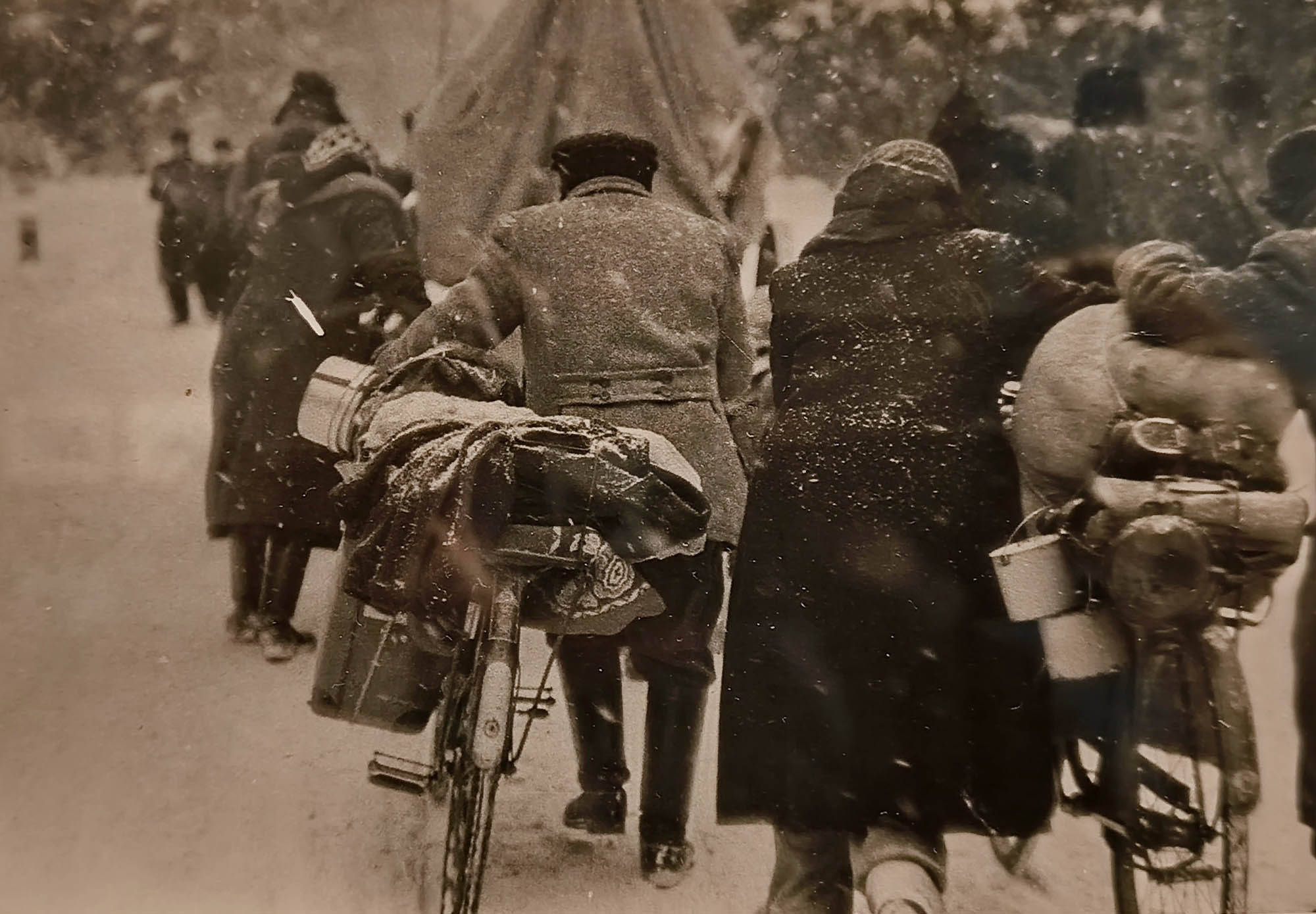 La maggior parte delle fotografie drammatiche cattura la lunga marcia stessa: camminando al freddo, sotto la neve e la pioggia, a volte fermandosi brevemente, a volte per qualche giorno dove si trovavano, e poi riprendendo il cammino. Esattamente un mese e 350 chilometri—e anche così, sono stati più fortunati dei rifugiati della Prussia Orientale.