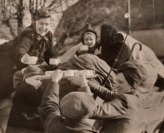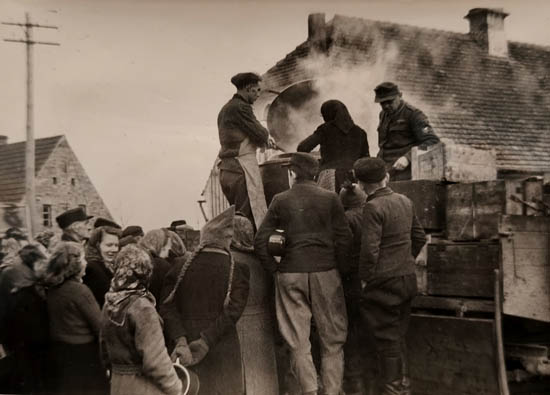 Molte delle immagini parlano di solidarietà: paesani e altri rifugiati che restano uniti, aiutandosi a vicenda. E dell’aiuto che ricevono: cibo, riparo, cure mediche, un mestolo di zuppa calda, persino una tazza di caffè per tutti, nei villaggi della Slesia attraverso i quali passano, villaggi che pochi giorni dopo saranno anch’essi evacuati. Dai resoconti, risulta che qui ricevettero molto più sostegno che nelle loro destinazioni finali nella Germania centrale, dove decenni dopo venivano ancora chiamati “polacchi” o “zingari” e ai bambini locali era proibito giocare con quelli dei nuovi arrivati.