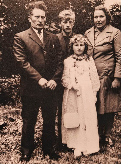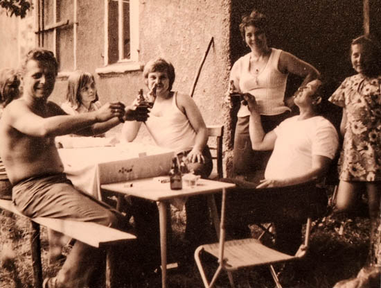 Membri delle famiglie Strombek e Beschorner a Lubów, durante le visite di questi ultimi iniziate nel 1975.