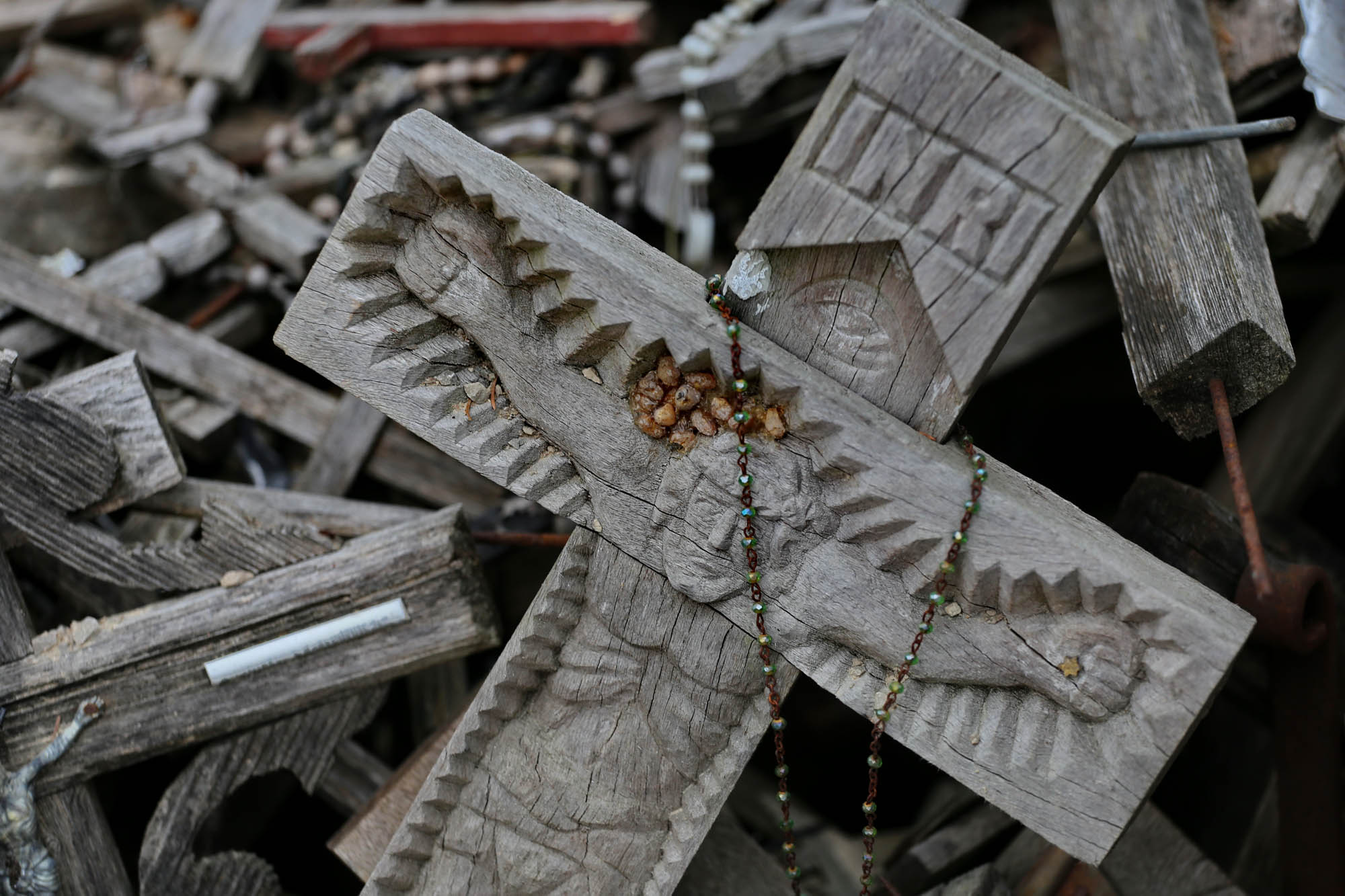 A prima vista, la quantità enorme di crocifissi e figure del Cristo può risultare opprimente. Ma se si passeggia per un po’ e si comincia a prestare attenzione ai dettagli, emerge gradualmente un’estetica molto particolare.