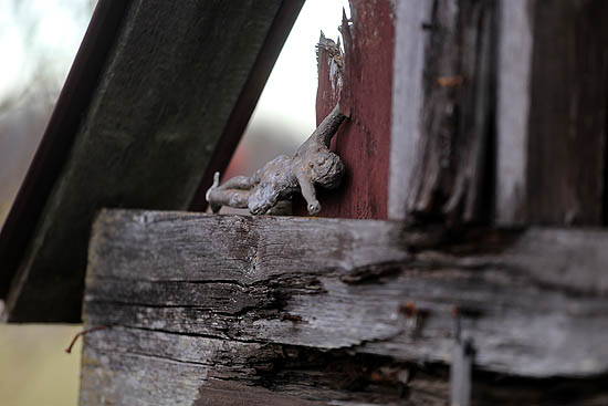 È importante anche il rapporto tra oggetti grandi e piccoli: le piccole croci appese ai grandi crocifissi, sempre più minute, fino a trasformarsi alla base in una massa in decomposizione di resti di croci —come se si ingrandisse un frattale, in cui, per quanto in profondità si vada, ogni livello ripete lo stesso schema.