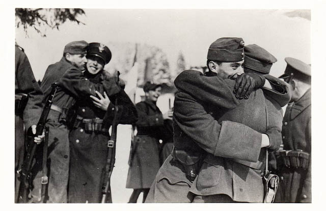 Magyar és lengyel katonák találkozása az újra Magyarországhoz csatolt vereckei határon, 1939. március 16. A Life fotótárából. Lásd a korabeli magyar-lengyel filmhíradót is.Tárt karokkal és tört németséggel. S mivel az utas sem tud németül, a társalgás inkább mutogatásból áll, melynek értelme : köszönöm… itt minden nagyon szép ! – Ó, tessék csak, tessék ! – S a takaros túristaházba kalauzolják az utast, ahol a falakon fenyőlombokkal díszítve, a főhelyen, Horthy Miklós kormányzó fényképe, szemben Moscicky. Mellettük Pilsudszky és Ridz-Smigly.